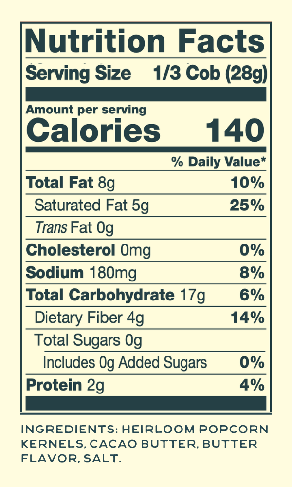 Our popcorn cobs are a bit more expensive to make because of our commitment to high-quality ingredients and manufacturing methods. We only use the best heirloom kernels, cacao butter, and the freshest herbs and spices for our cobs. Sure, you can make the popcorn that comes in a bag, but try our popcorn cobs, and you’ll taste and feel the difference.