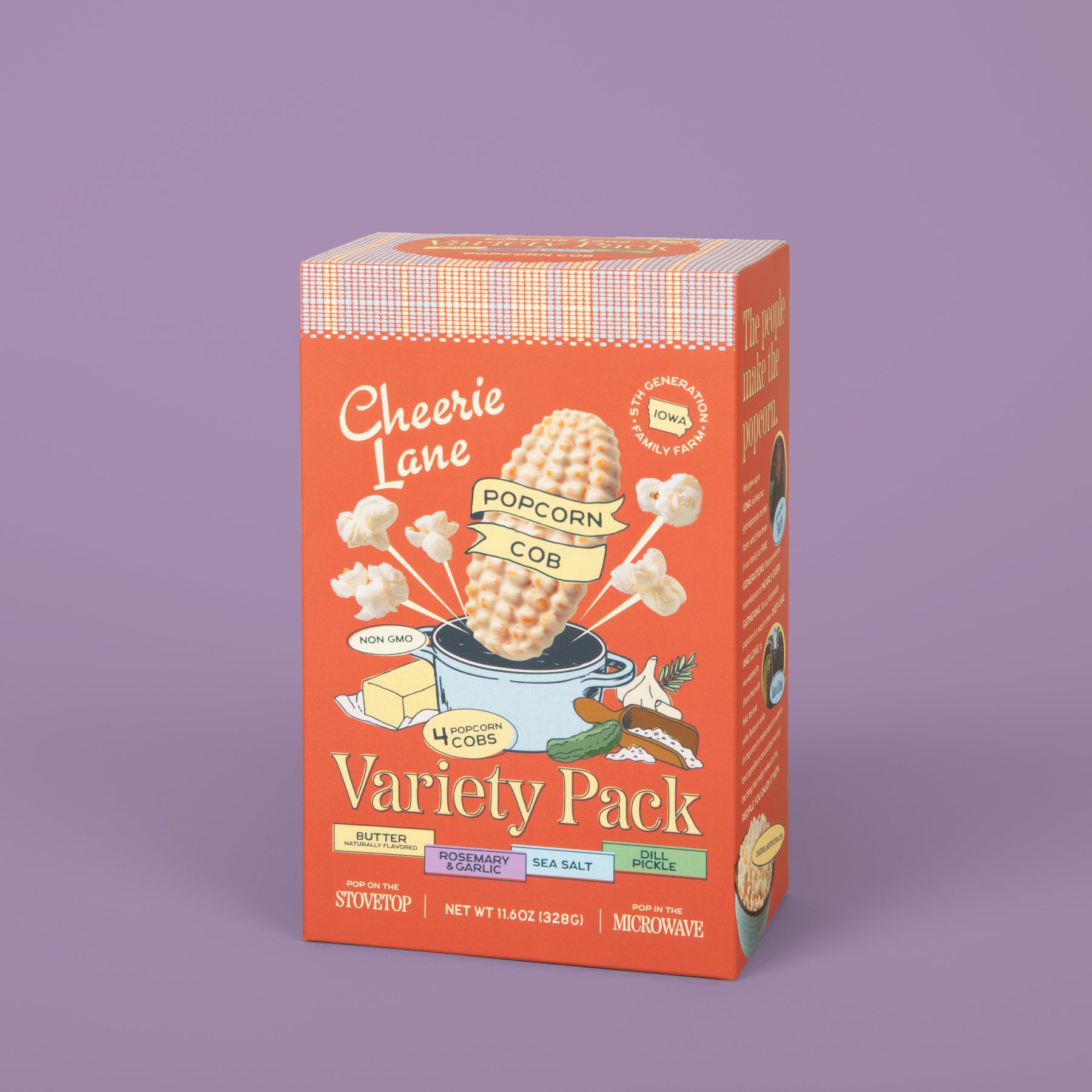 Includes 1 x Butter Cob, 1 x Rosemary & Garlic Cob, 1 x Sea Salt Cob, and 1 x Dill Pickle Cob